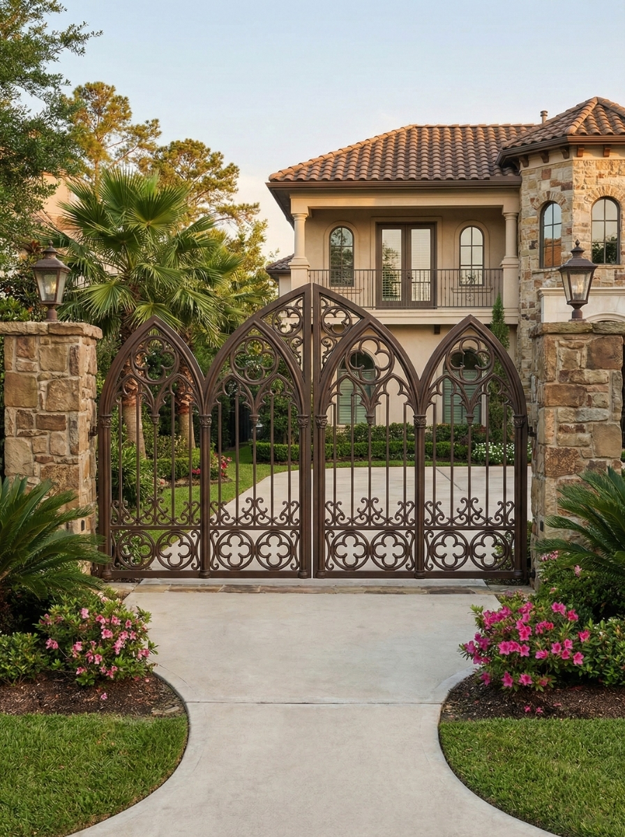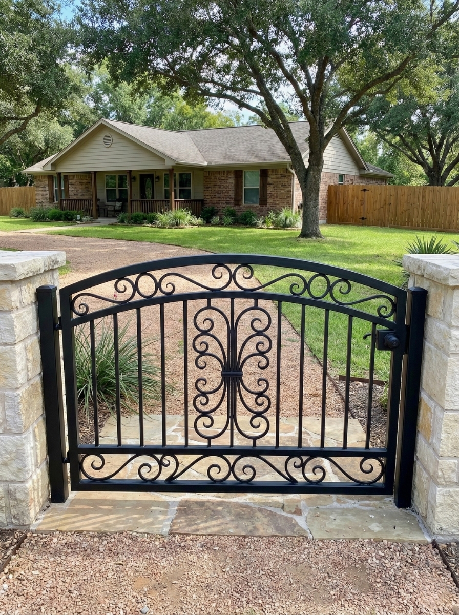 Custom wood and iron entry gates designed for security, privacy, and curb appeal.